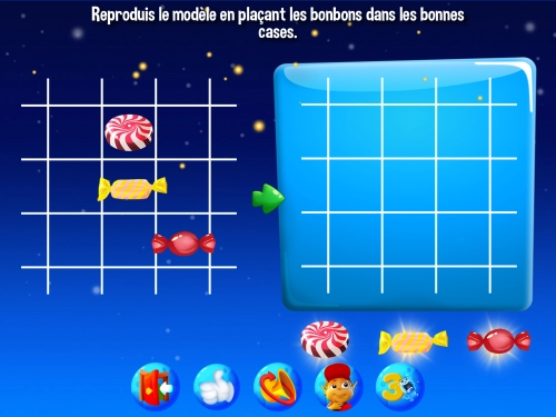 Dans la salle des mathématiques l'enfant pourra s'exercer aux suites, aux quadrillages et tableaux, se repérer dans l'espace (labyrinthe et choisir un trajet), la structuration de l'espace (loin, près, gauche, droite), classer, compter et ranger, comparer les quantités, la monnaie ou apprendre à reconnaître les formes géométriques.Chaque exercice est disponible dans 3 niveaux de difficulté.Dans la salle des lettres ou du français perception visuelle (retrouver une image, classer et associer des images), les lettres (reconnaître les lettres et minuscules et majuscules), sons et sylabbes (repérer et situer un son dans un mot, associer 2 mots qui riment, différencier les sons, compter les syllabes), vocabulaire (le vivant et les objets du quotidien), le rôle de l'écrit et l'écrit au quotidien. récit et description (comprendre une description, les contraires), les mots (retrouver une lettre dans un mot, l'initiale du mot, reconstituer un mot).Dans la cuisine l'enfant devra retrouver les ingrédients nécessaires à la recette qu'il a sélectionnée en cherchant dans le frigo ou sur l'étagère. Dans le potager l'enfant pourra planter des graines de légumes et autres fruits (salade, tomates, carottes, fraise et blé) les arroser , les voir pousser et les récolter.Dans le coin des fleurs l'enfant peut créer les fleurs de son choix en mélangeant les graines de couleurs.