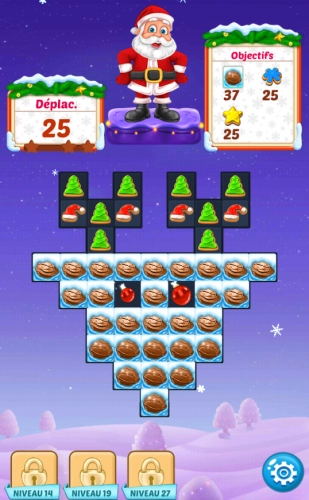 Associe les cookies pour créer des superbes combinaisons et gagner des boules de Noël et autres boosters pour un effet unique et incroyable !