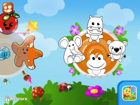 L'application de coloriage propose aux plus jeunes enfants de colorier sans dépasser tout en se familiarisant avec les outils de dessin : crayon, pinceau, gomme, et même effet scotch imprimé.