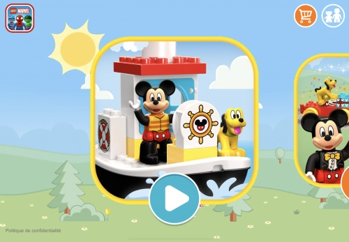 Le jeu Lego Duplo Disney comporte 3 packs : le bateau de Mickey, le train d'anniversaire de Mickey et Minnie et le château magique. Le bateau de de Mickey est intégralement accessible dans la version gratuite de l'application éducative. Le pack gratuit comporte 4 activités :